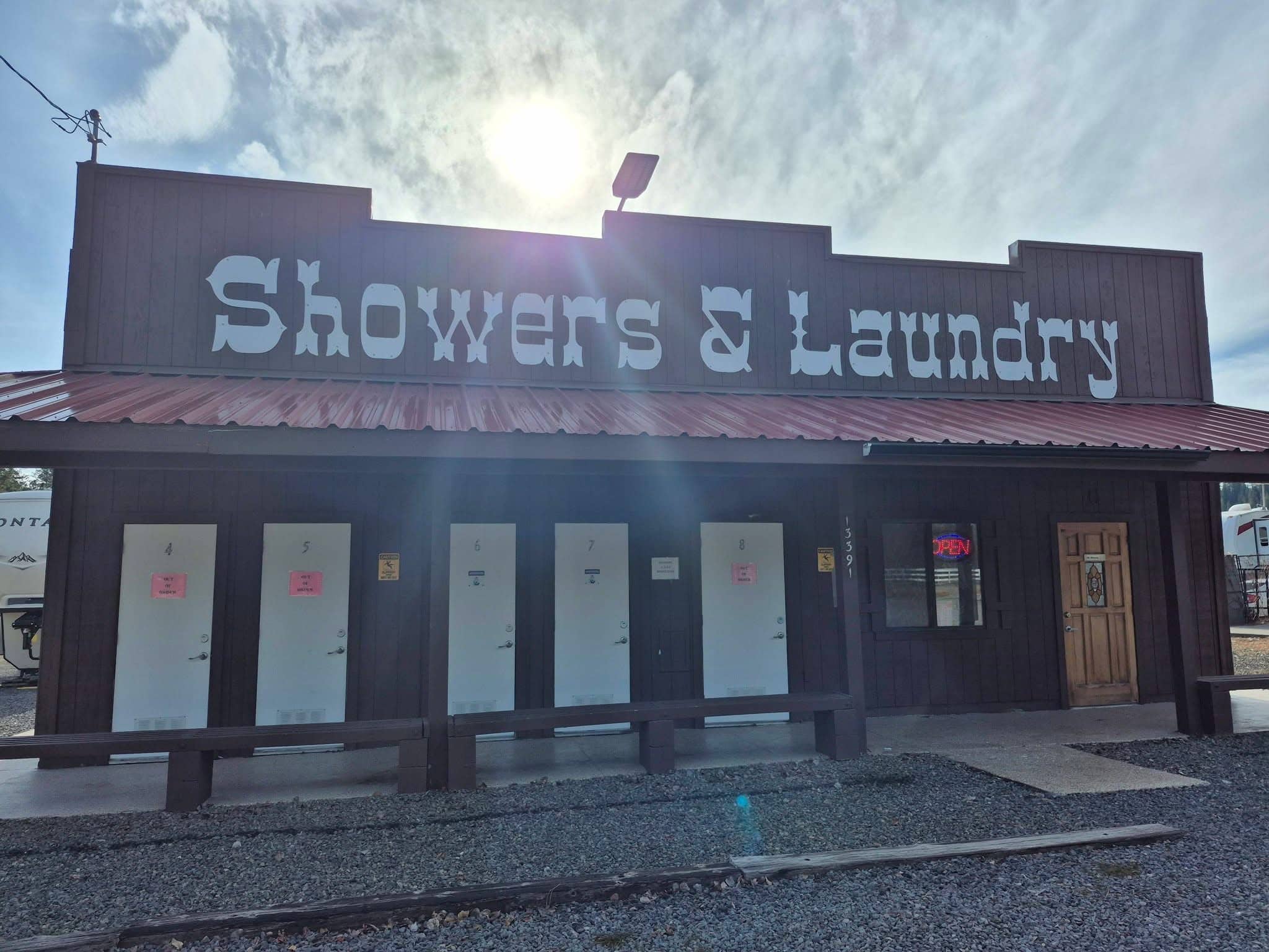 - Showers and laundry