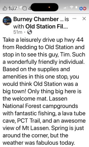 The photos below are from the Facebook page for The Burney CA Chamber of Commerce – they rock! You can click on the picture for a bigger version to look at.