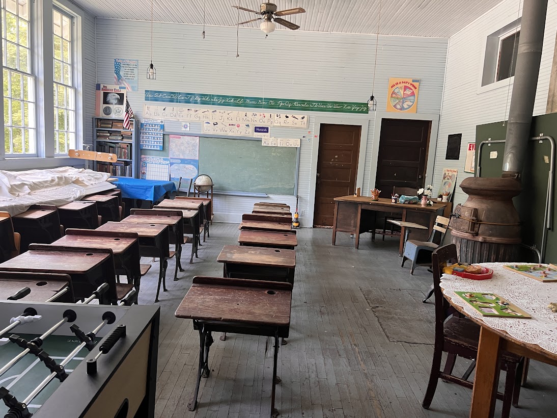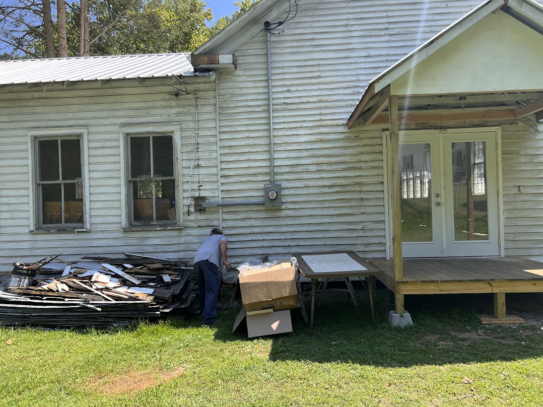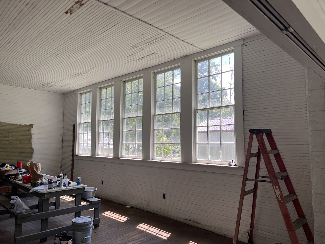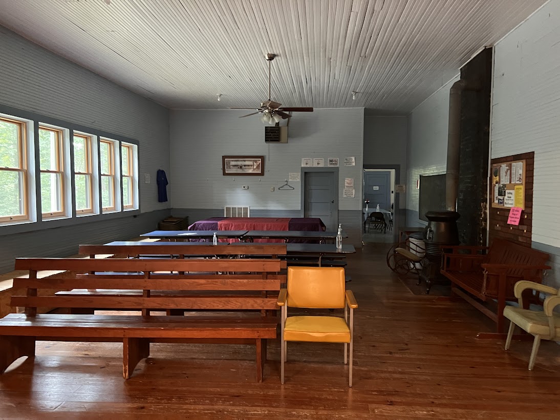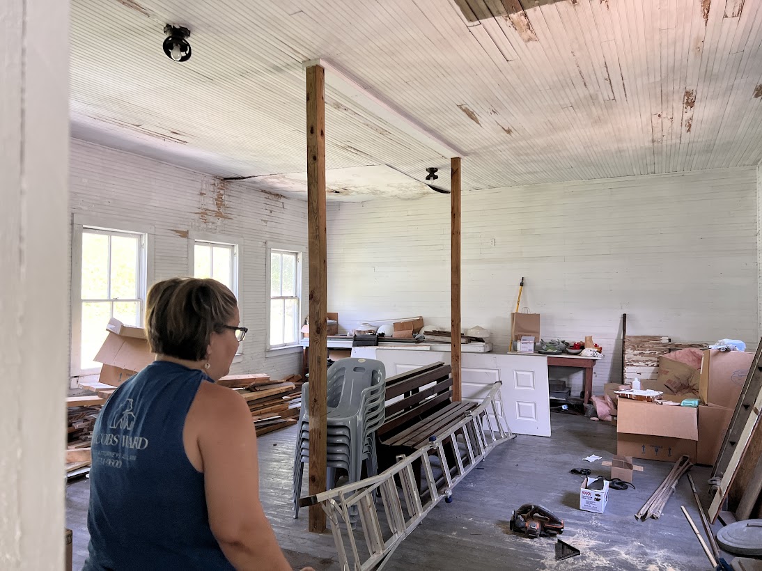 One of the women working there, Liberty, was from the Doty Church just down the road. They were originally giving things away from the church, but outgrew it. So they arranged to be stationed in the Parts Store. Liberty had this idea that they needed their own kind of community center. She envisions a commercial kitchen, a place for people to come and have coffee, maybe do some work. There could be workshops in it, and a place for the church to help others. So she bought the old Doty Creek School Building. Her dad just retired as a builder, and now he is repairing the old church.
