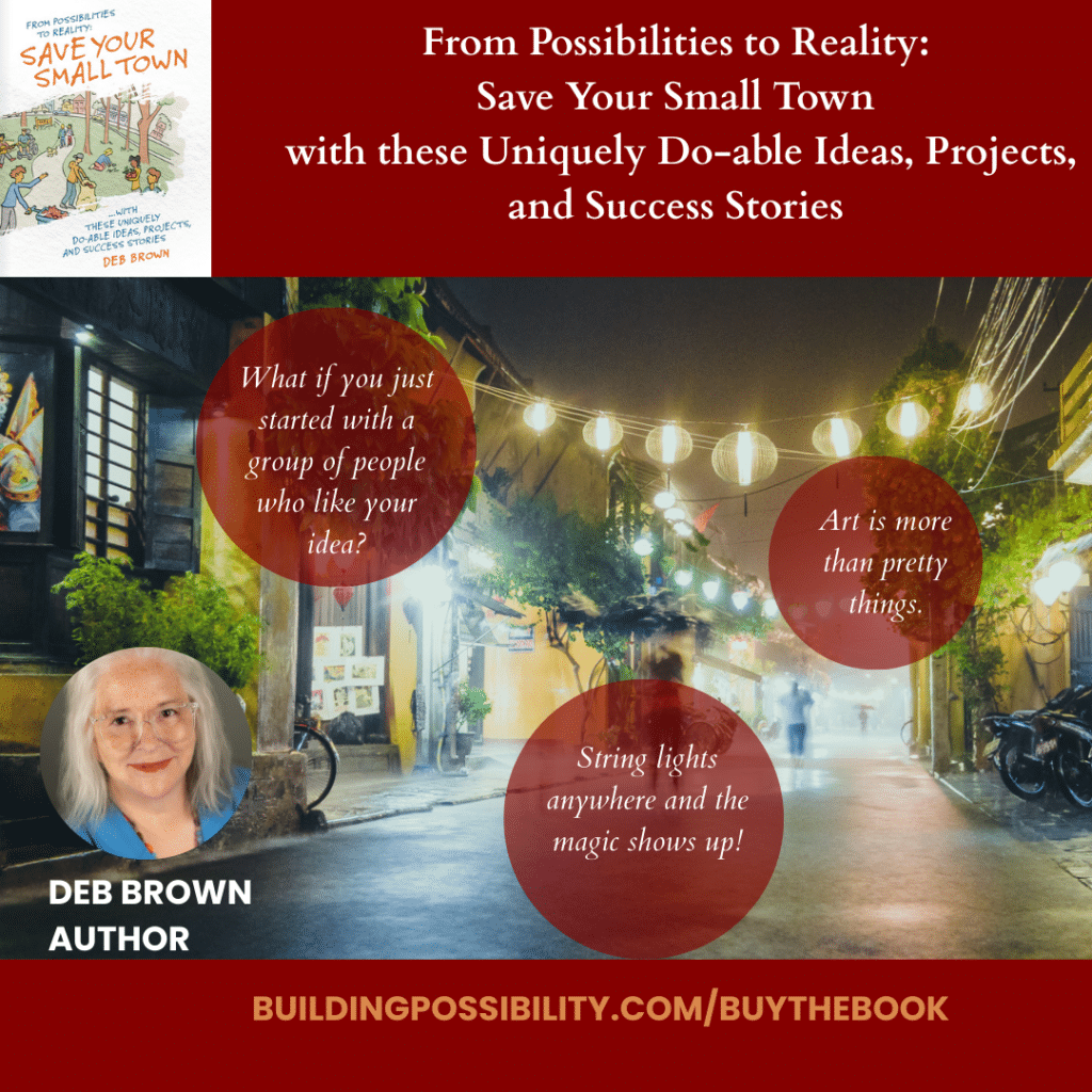From Possibilities to Reality: Save Your Small Town with these Uniquely Do-able Ideas, Projects, and Success Stories is a workbook written with you and your small town in mind.